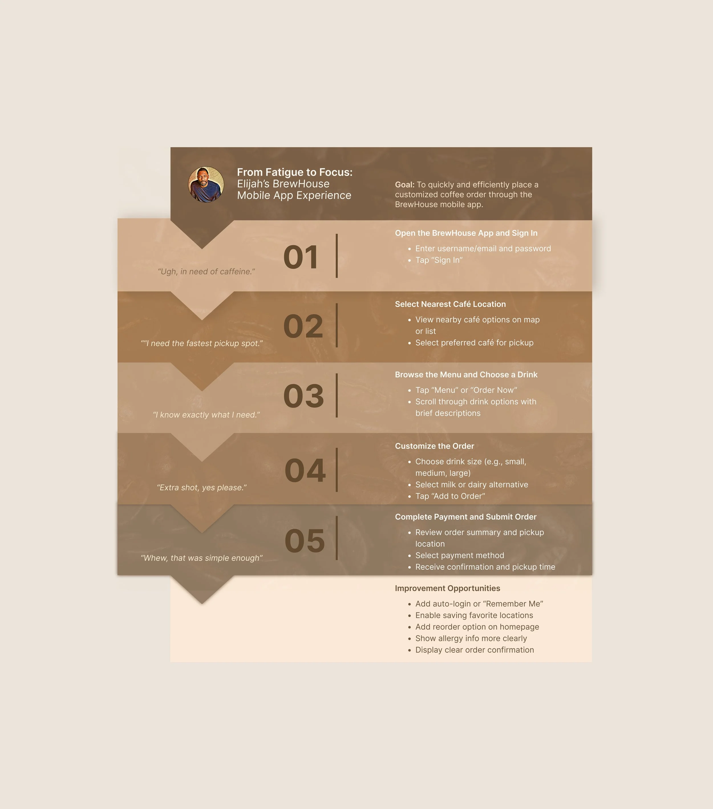 During usability testing of the café’s mobile ordering app, I identified a few key areas for improvement based on user feedback.